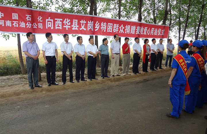 這次捐贈活動為西華縣艾崗鄉(xiāng)半截樓村群眾免費送來了10噸柴油,平均每臺收割機50升。這也是省委宣傳部聯(lián)合中石化河南石油分公司連續(xù)5年開展這項活動。5年來,為駐村群眾免費送油共計50噸。在活動現(xiàn)場,中石化的加油車為十幾臺收割機免費加了“愛心油”,并送給村民每人一個裝有汗衫、毛巾和手套的“愛心禮包”,有效地解決了困難群眾最關(guān)心、最急需的麥?zhǔn)沼糜蛦栴},服務(wù)群眾、支援三夏走完最后一公里。三夏志愿服務(wù)隊員莊嚴(yán)承諾,為顆粒歸倉、豐產(chǎn)豐收提供最便利、最高效的服務(wù)。劉國明副巡視員在致辭詞中轉(zhuǎn)達(dá)了部領(lǐng)導(dǎo)對駐村幫扶點半截樓村群眾的問候,對中石化河南石油分公司履行國企職責(zé),積極開展“石油惠農(nóng)服務(wù)優(yōu),支援三夏促豐收”扶貧濟困的愛心行動表示贊賞和感謝。劉國明副視員要求駐村工作隊,三夏期間繼續(xù)加大幫扶力度,對因病致貧、致寡家庭、軍烈屬、外出務(wù)工農(nóng)戶,組織青年志愿者無償幫扶收麥。呼吁社會各界樹立公益愛心理念,傳遞社會正能量,積極開展城市反哺農(nóng)村,企業(yè)支持農(nóng)業(yè),市民關(guān)愛農(nóng)民等活動,為早日建成美麗鄉(xiāng)村助一臂之力。(駐村工作隊)