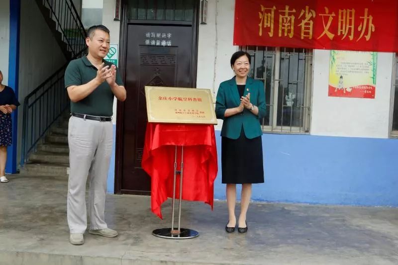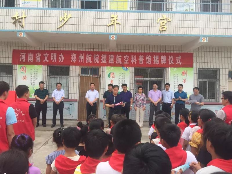 7月11日,河南省委宣傳部常務(wù)副部長(zhǎng)蘇長(zhǎng)青、副部長(zhǎng)張曼如、省文明辦專職副主任王飛等同志帶領(lǐng)部機(jī)關(guān)有關(guān)人員,與鄭州航空管理學(xué)院有關(guān)領(lǐng)導(dǎo)和志愿者師生一行,分別到省委宣傳部幫扶貧困村周口市西華縣半截樓村和漯河市舞陽縣余莊村,為省文明辦、鄭州航院援建的航空科普館和鄭州航院志愿服務(wù)基地舉行揭牌儀式。
